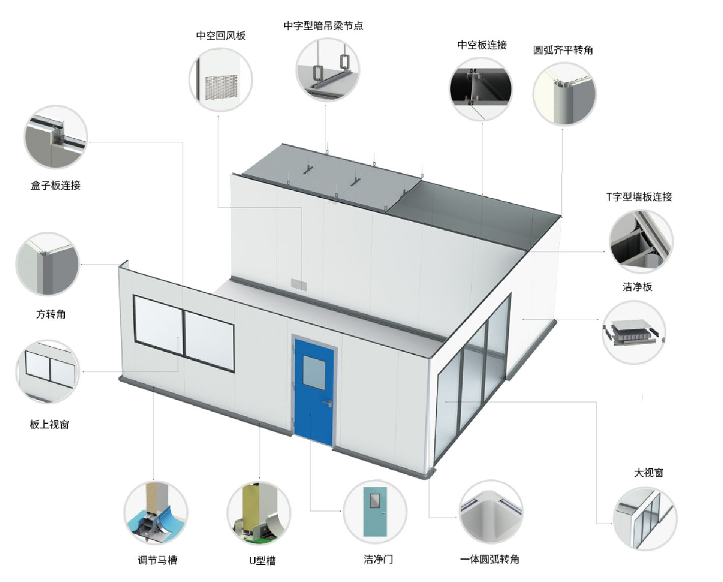洁净板采用专用彩涂钢板、铝合金板等材料作为面板,以岩棉、铍镁板、铝蜂窝等为芯材复合而成,产品性能优异,适用各类室内环境要求苛刻的洁净室工程,是理想的洁净室围护材料。