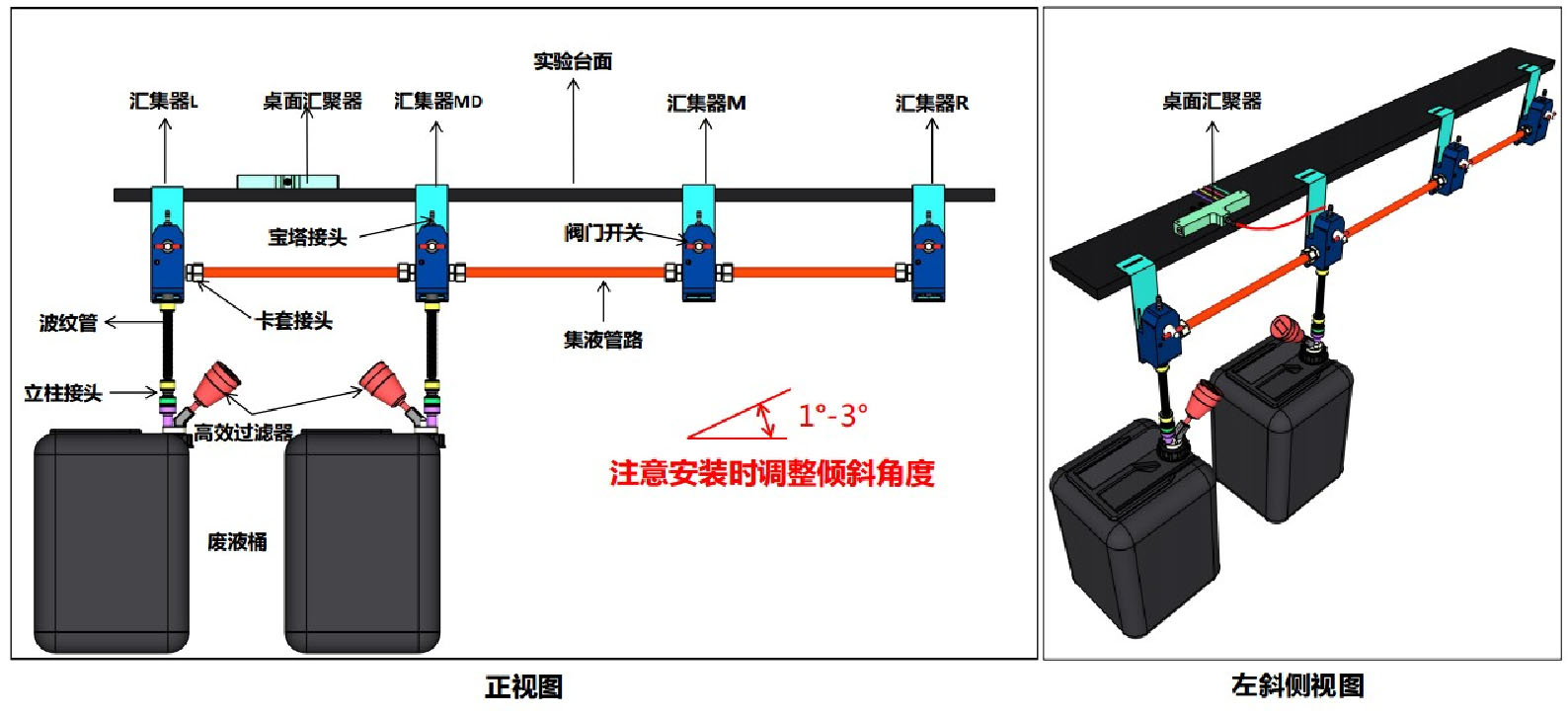 废液收集管路系统示意图
