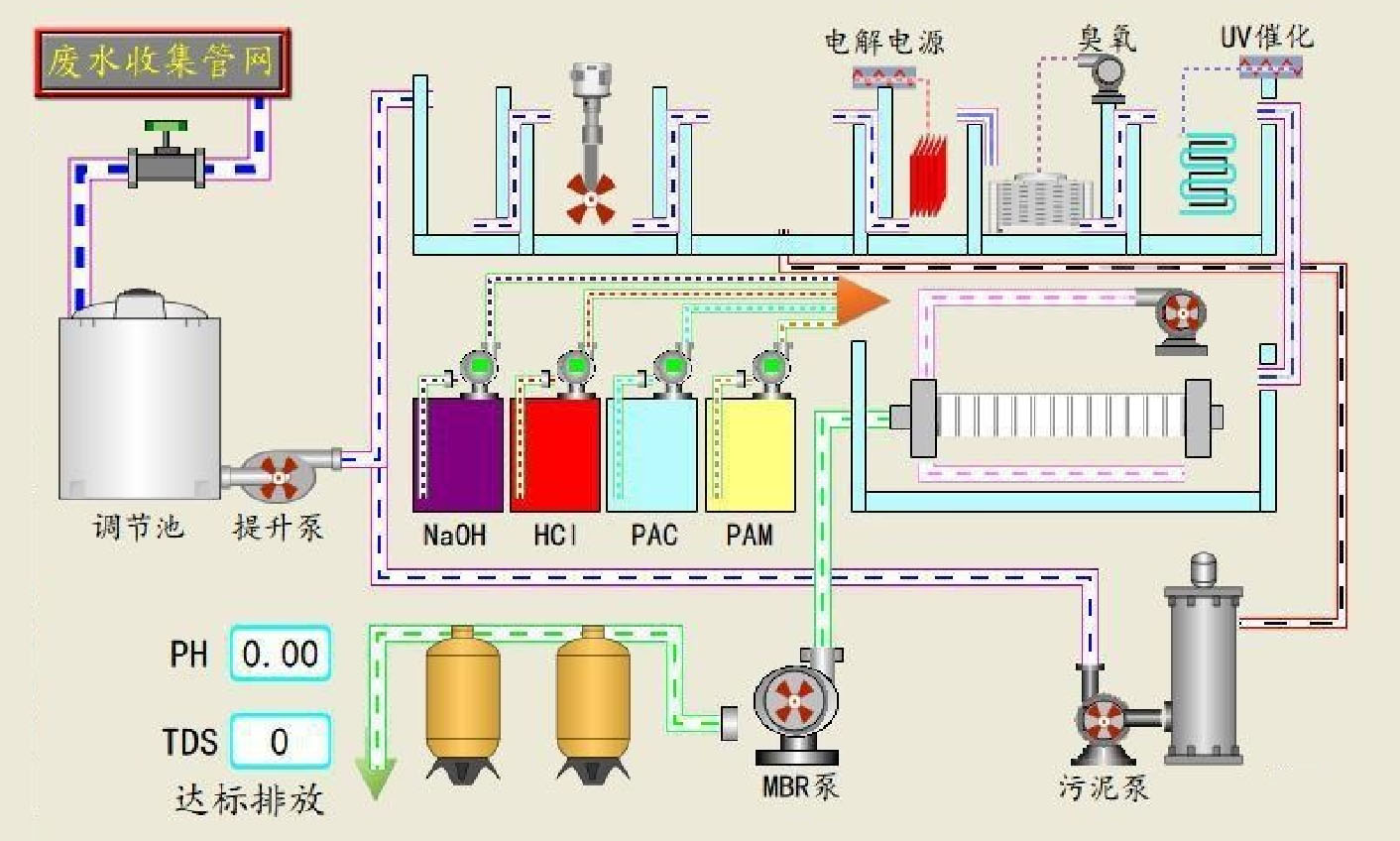 • 酸碱中和:根据原水PH值进行加酸加碱中和